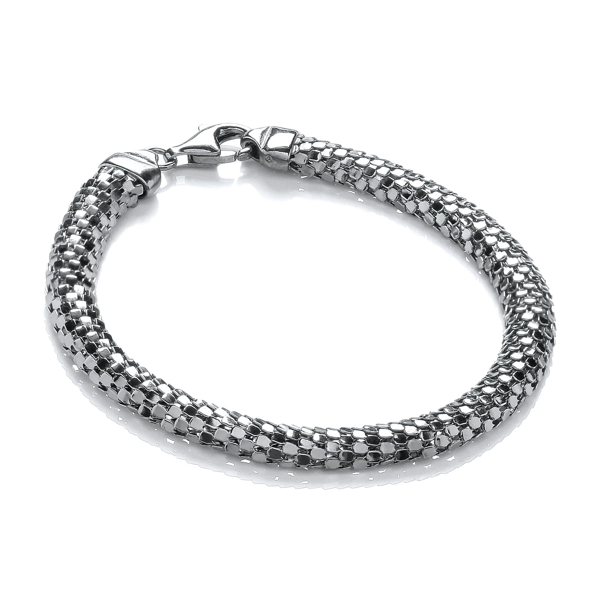 Featuring a distinctive D-shape profile and a sleek ruthenium colour mesh, this bracelet offers a modern, versatile accessory with a subtle, gunmetal glow. The mesh construction provides flexible comfort and a smooth, flattering silhouette on the wrist, making it suitable for daily wear and special occasions alike.
